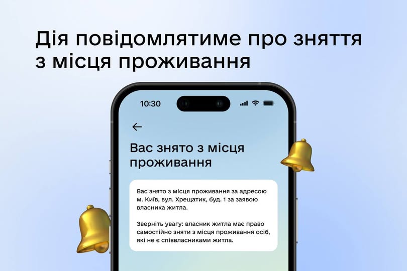 Відтепер громадяни отримуватимуть повідомлення у застосунку «Дія», якщо їх знімуть з місця реєстрації проживання. Раніше це могло відбутися без відома людини