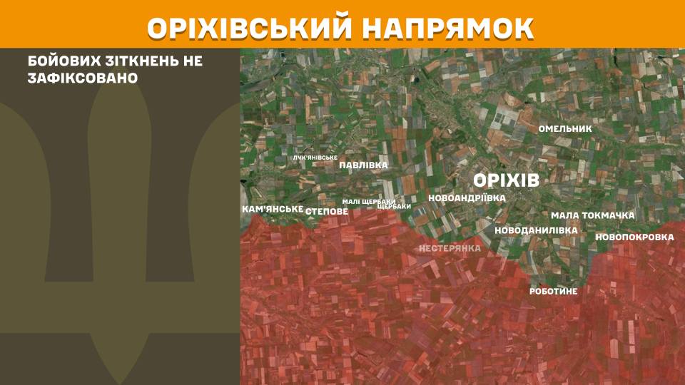 На Оріхівському напрямку бойових зіткнень не зафіксовано.