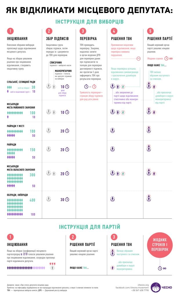 Є дві процедури відкликання депутатів за народною ініціативою. Перша – щодо звернення місцевого осередку до вищого партійного органу щодо відкликання за зверненням місцевого осередку партії, друга – пряма процедура за народною ініціативою.