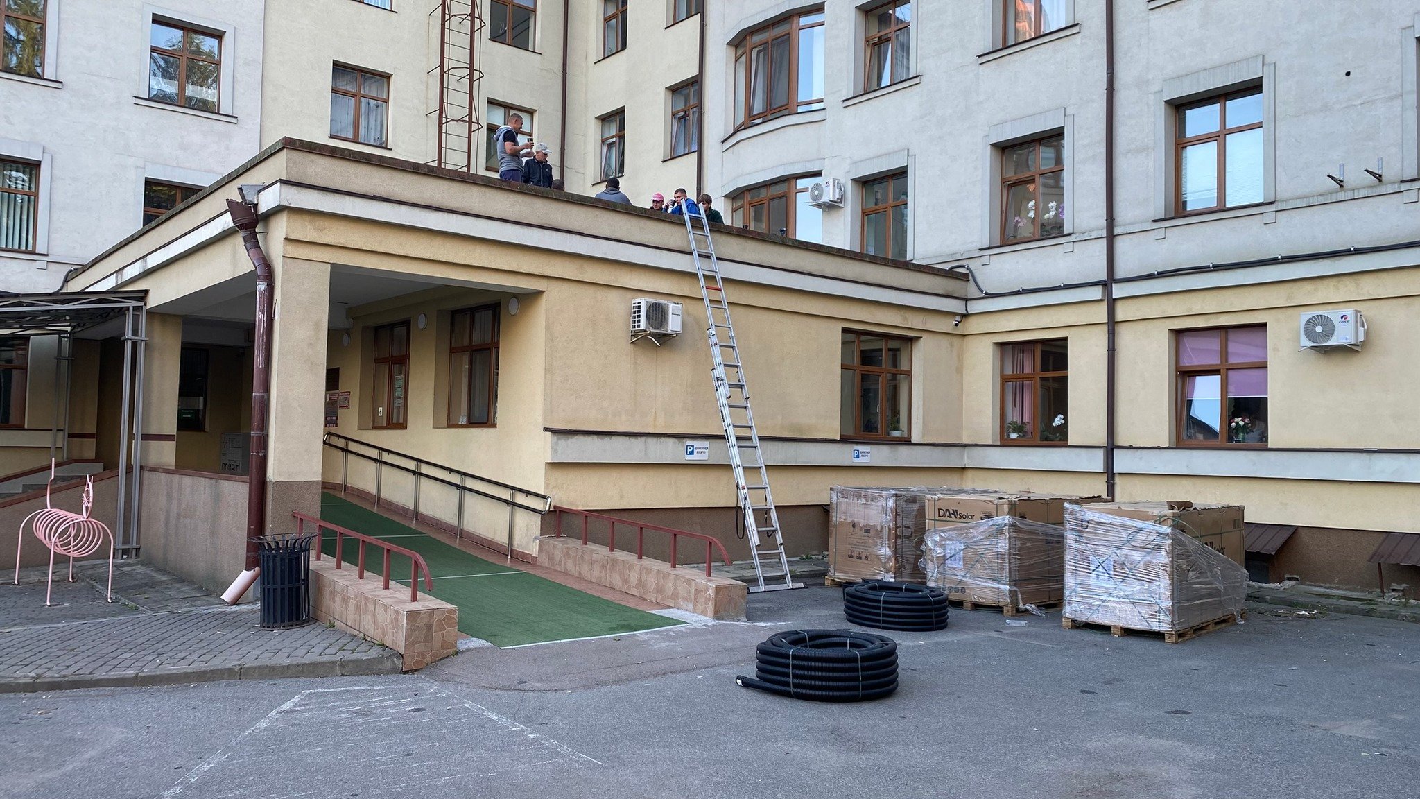 На даху хірургічного корпусу міської дитячої клінічної лікарні у Чернівцях розпочали встановлювати сонячні панелі.