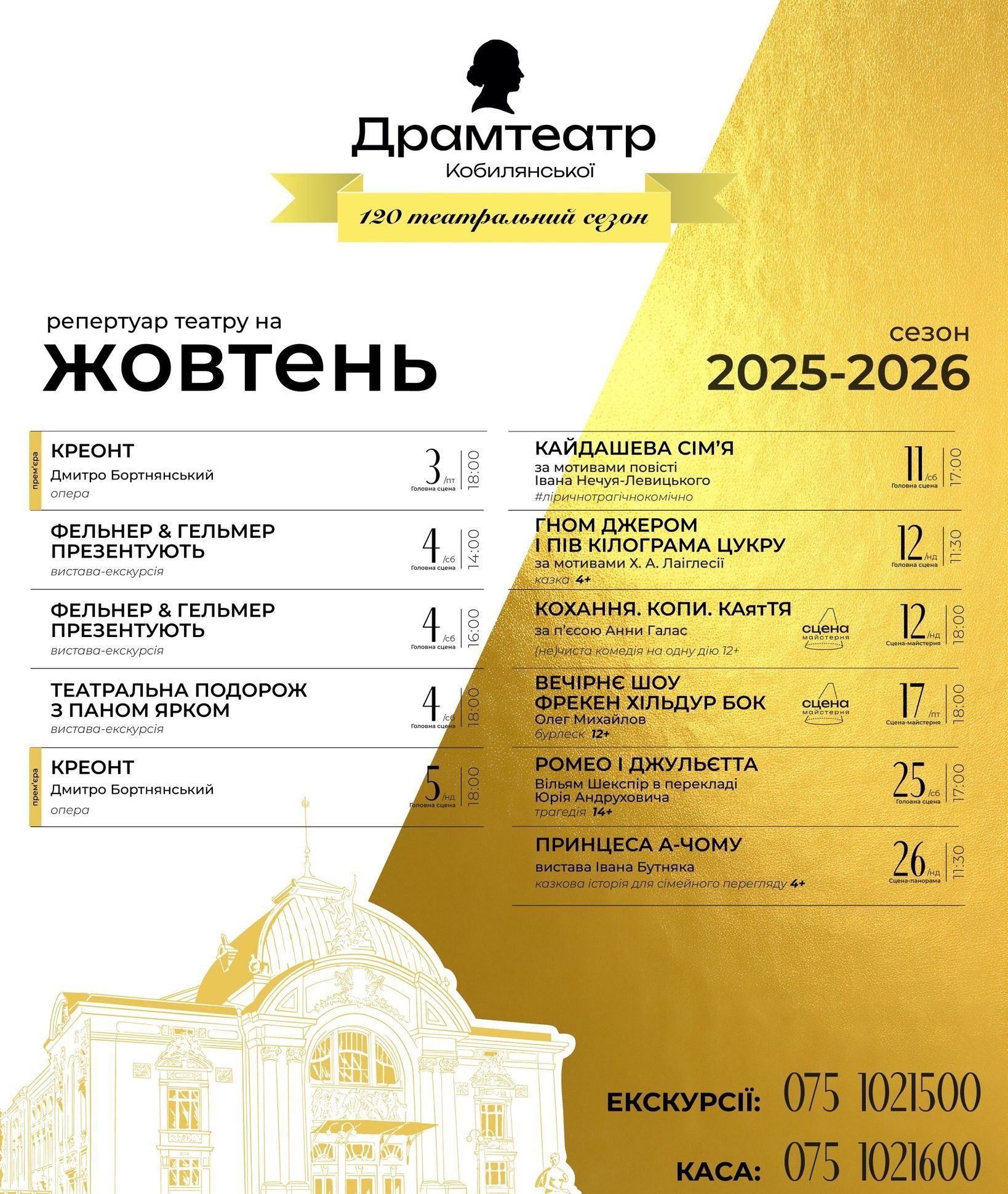 Чернівецький обласний академічний театр імені Ольги Кобилянської презентував афішу вистав на жовтень.