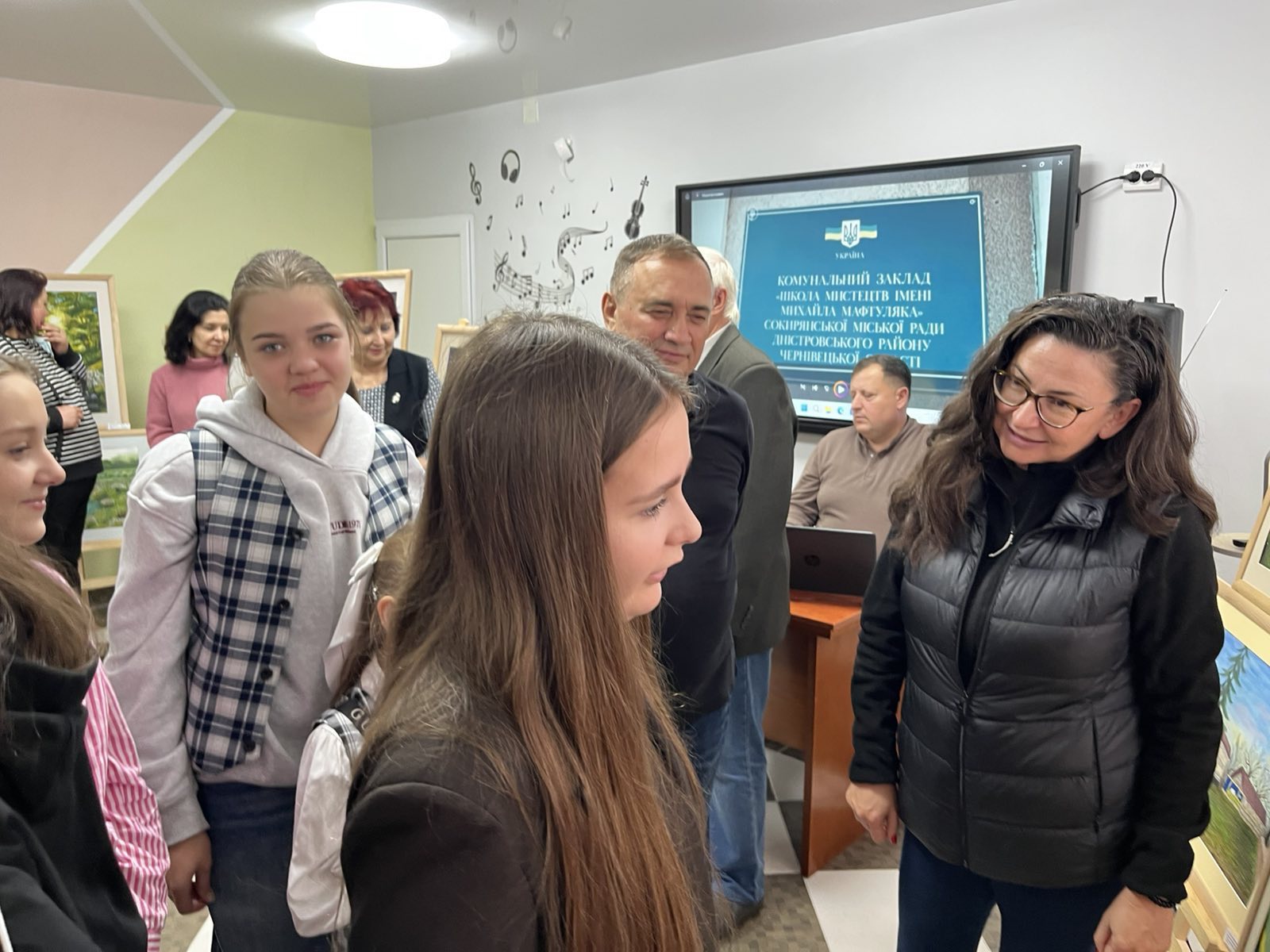 Привітати, підтримати Каріну та познайомитись із творчістю дівчини завітали міський голова Василь Козак, депутат Чернівецької обласної ради Лілія Бортич, начальник відділу освіти Галина Рябко, керівник КЗ «Школа мистецтв ім. Михайла Мафтуляка» Наталія Кулій, директор ОЗ «Романковецький ліцей імені академіка К.Ф. Поповича» Валерій Степаненко, рідні юної художниці, педагоги, учні та шанувальники мистецтва.