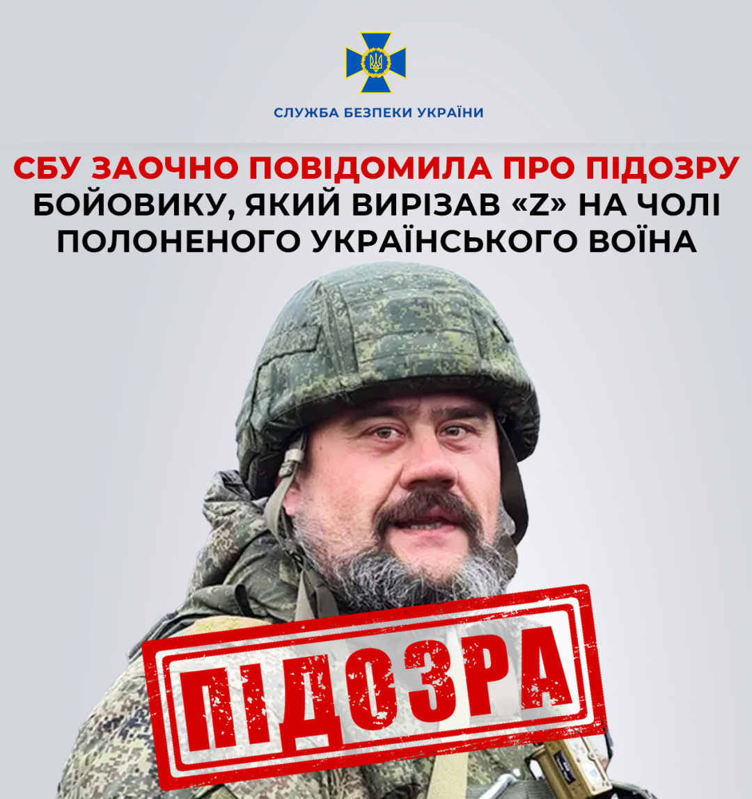 Служба безпеки України заочно повідомила про підозру бойовику з Луганської області, який вирізав літеру «Z» на чолі полоненого українського воїна.