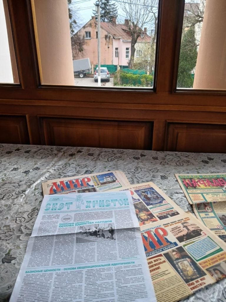 Шовіністичні російські газети в Миколаївському храмі в Чернівцях (весна 2025 року)