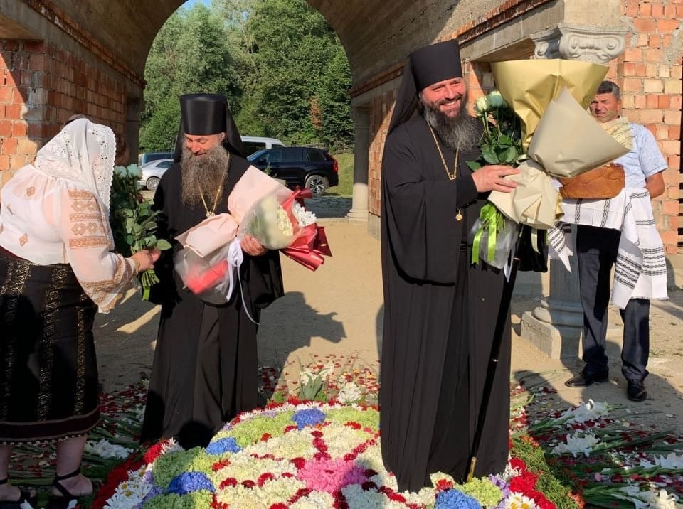 Зустріч у Красноїльську Чернівецької области з квітами єпископа Патрокла Поромбока, який декілька місяців до того отримав від Кирила Гундяєва сан у москві (2024 року)