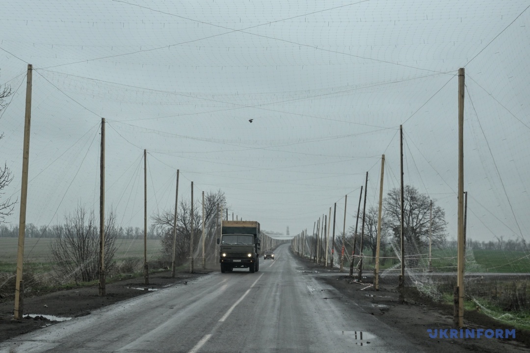 Тим часом проїжджаємо ділянку дороги, де натягнуті антидронові сітки. Є інформація, що група «шахедів» летить на Васильківку. Потім зʼявиться повідомлення про влучання в адмінбудівлі, потрощені кафе, приватні оселі й господарські споруди. На щастя, люди не постраждали.