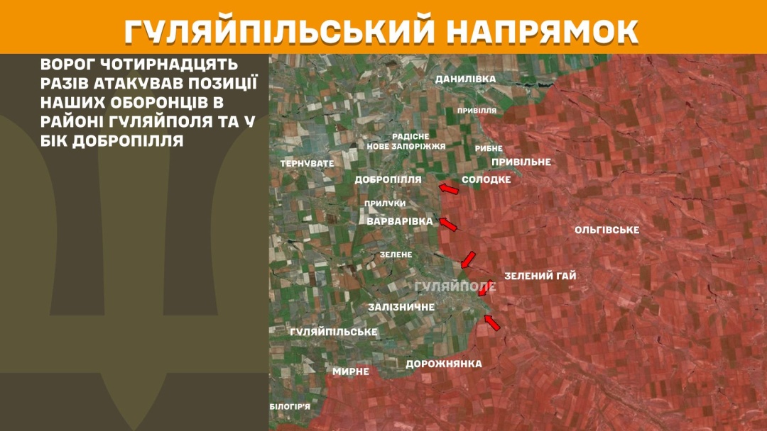 На Гуляйпільському напрямку росіяни 14 разів атакували в районі Гуляйполя та в бік Добропілля.