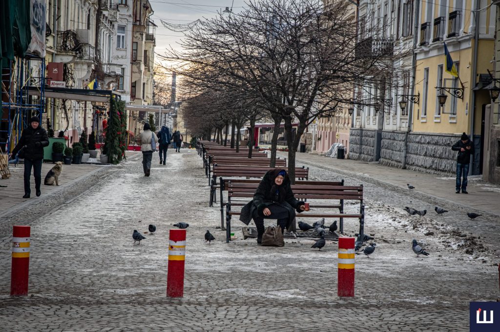 У перший день нового року у центрі міста спокійні вулиці без звичного міського шуму.