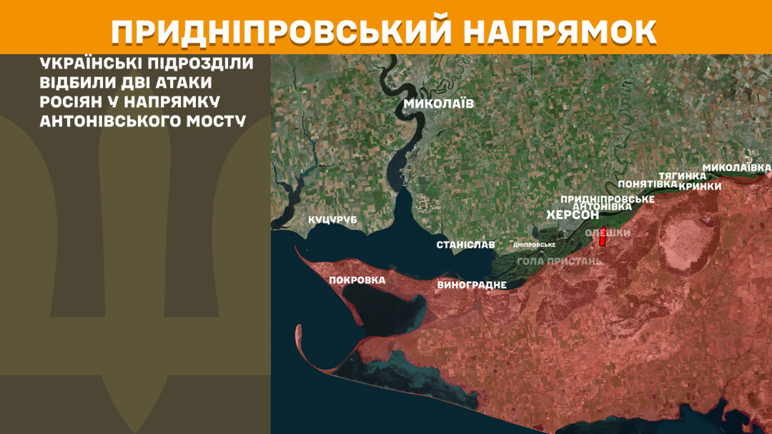 На Придніпровському напрямку Сили оборони відбили дві російські атаки у напрямку Антонівського мосту.