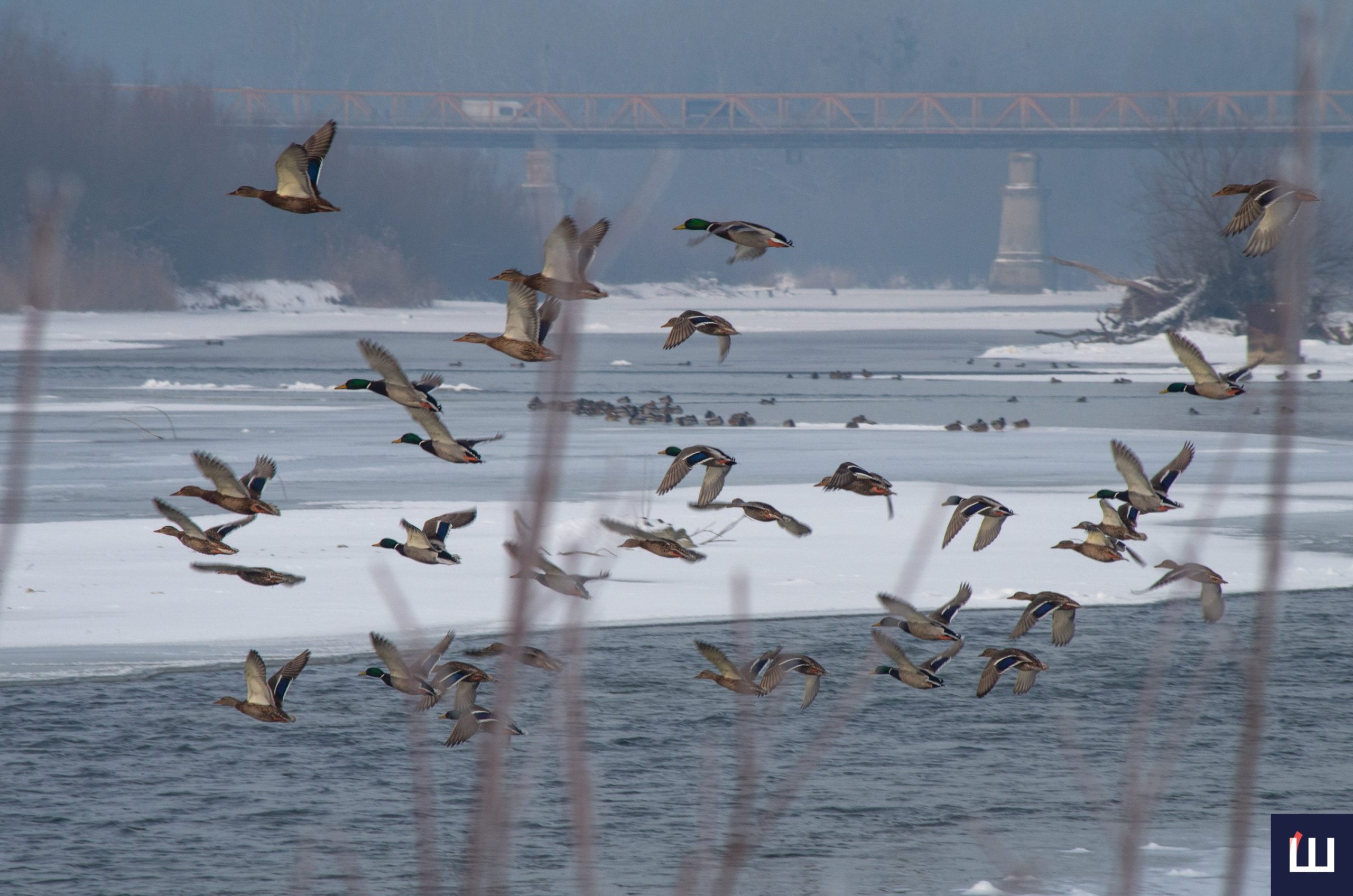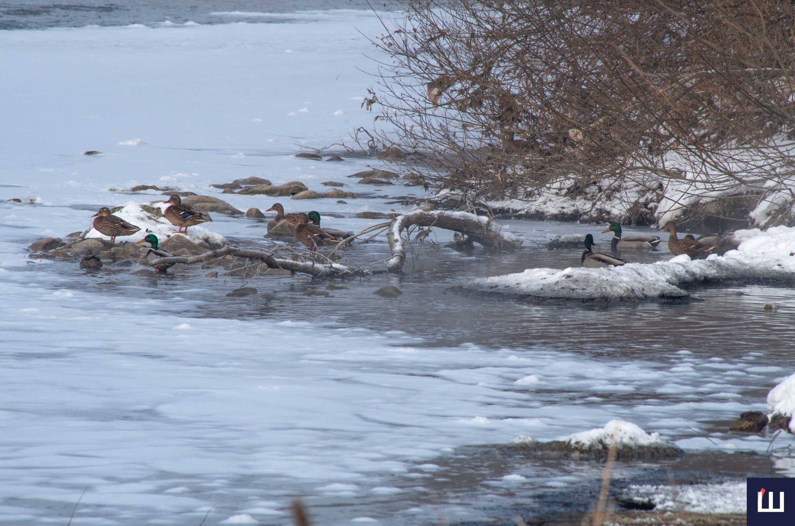 Фотограф «Шпальти» Тарас Піц зазнімкував білосніжних лебедів та диких качок, які попри мінусову температуру мирно ніжилися на сонці у воді, на островах і на берегах річки.