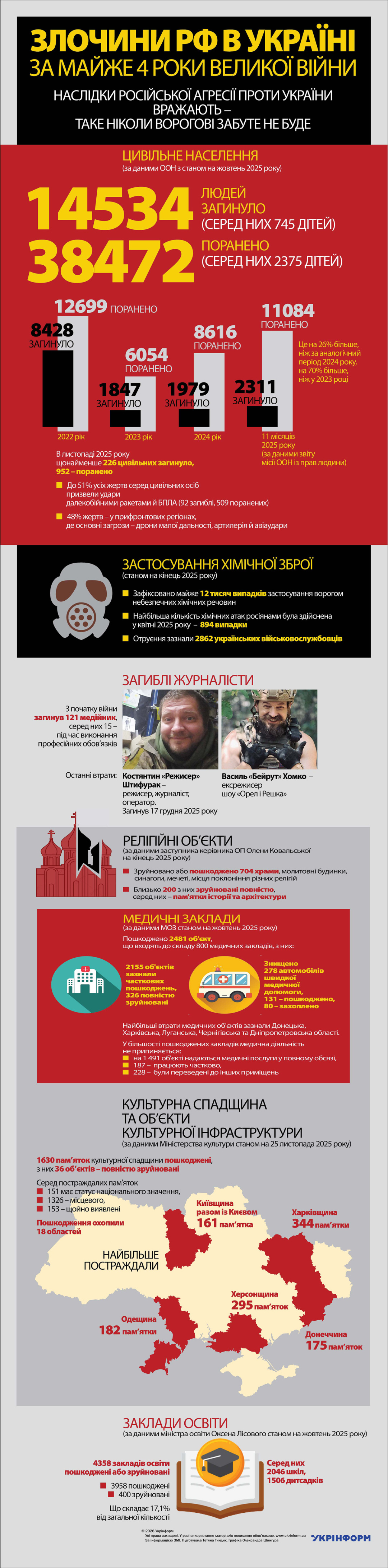 Злочини РФ в Україні за майже 4 роки Великої війни