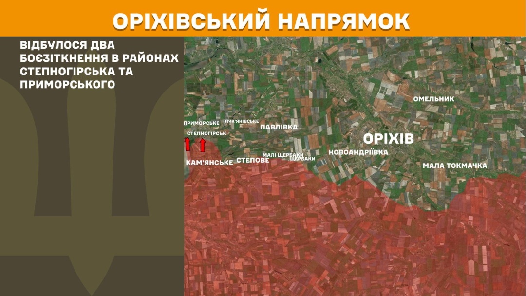 На Оріхівському напрямку відбулися два боєзіткнення в районах Степногірська та Приморського.