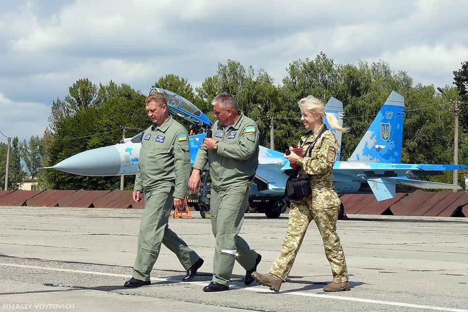 Я ніколи б не могла подумати, що фото, яке ми зробили на летовищі в Миргороді, облетить увесь світ. У липні 2022-го організатори міжнародного показу бойової авіаційної техніки "The Royal International Air Tattoo-2022", який відбувався на британській авіабазі Fairford Royal Air Force, вшанували пам’ять полковника Оксанченка. На згадку про Олександра Яковича та його бойову машину Су-27 британці спорудили композицію на майданчику, де колись стояв цей літак, з фото льотчика та українським прапором. Поруч із композицією авіатехніки летовища за традицією розмістили колодки, що ставилися під колеса винищувача.