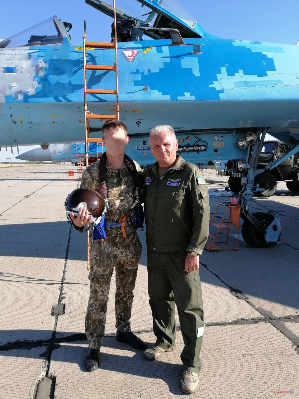 Я пам’ятаю той день, як зараз: практичний іспит, пуск ракети по світловій мішені. Коли я зарулив на стоянку і відкинув ліхтар кабіни (ліхтар – це "скляний купол" над головою льотчика – авт.), перше, що я побачив — його. Мій улюблений інструктор, мій другий батько, стояв там, осторонь, і просто посміхався. У тій посмішці було все: гордість, спокій і благословення в небо. Саме тоді, на емоціях від першої справжньої перемоги, ми зробили це фото.