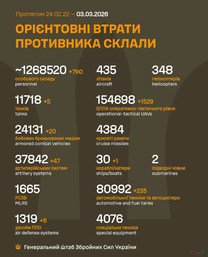 Ми зібрали для вас інформацію про тисяча чотириста шістдесят дев’ятий день Великої війни: чим жили Україна та українці 3 березня 2026 року.