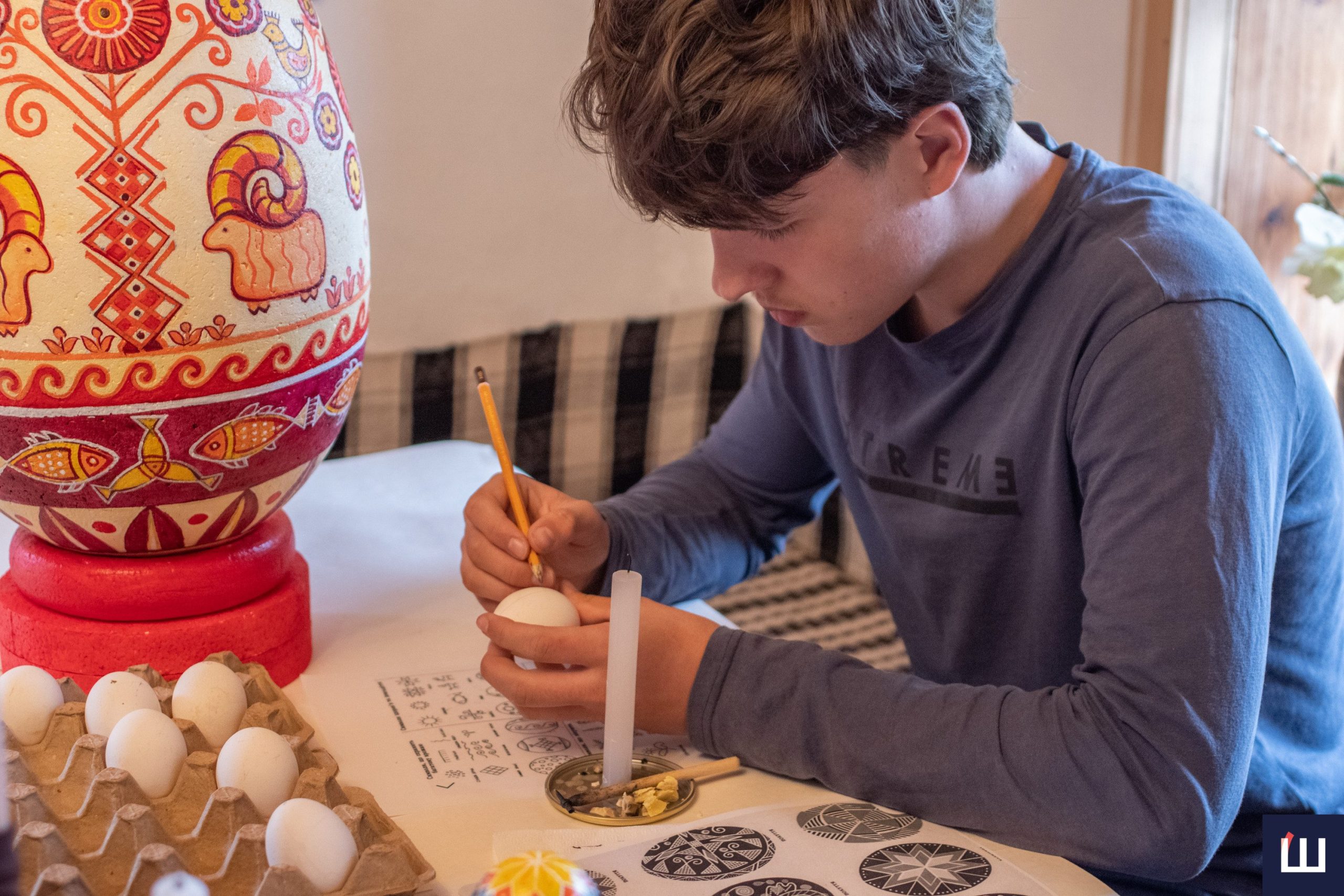 Особливу увагу під час заходу приділили атмосфері: писанки створювали у тиші та з хорошим настроєм. Організатори наголошують — цей процес не терпить поспіху, адже головне тут не ідеальний результат, а внутрішній стан людини.