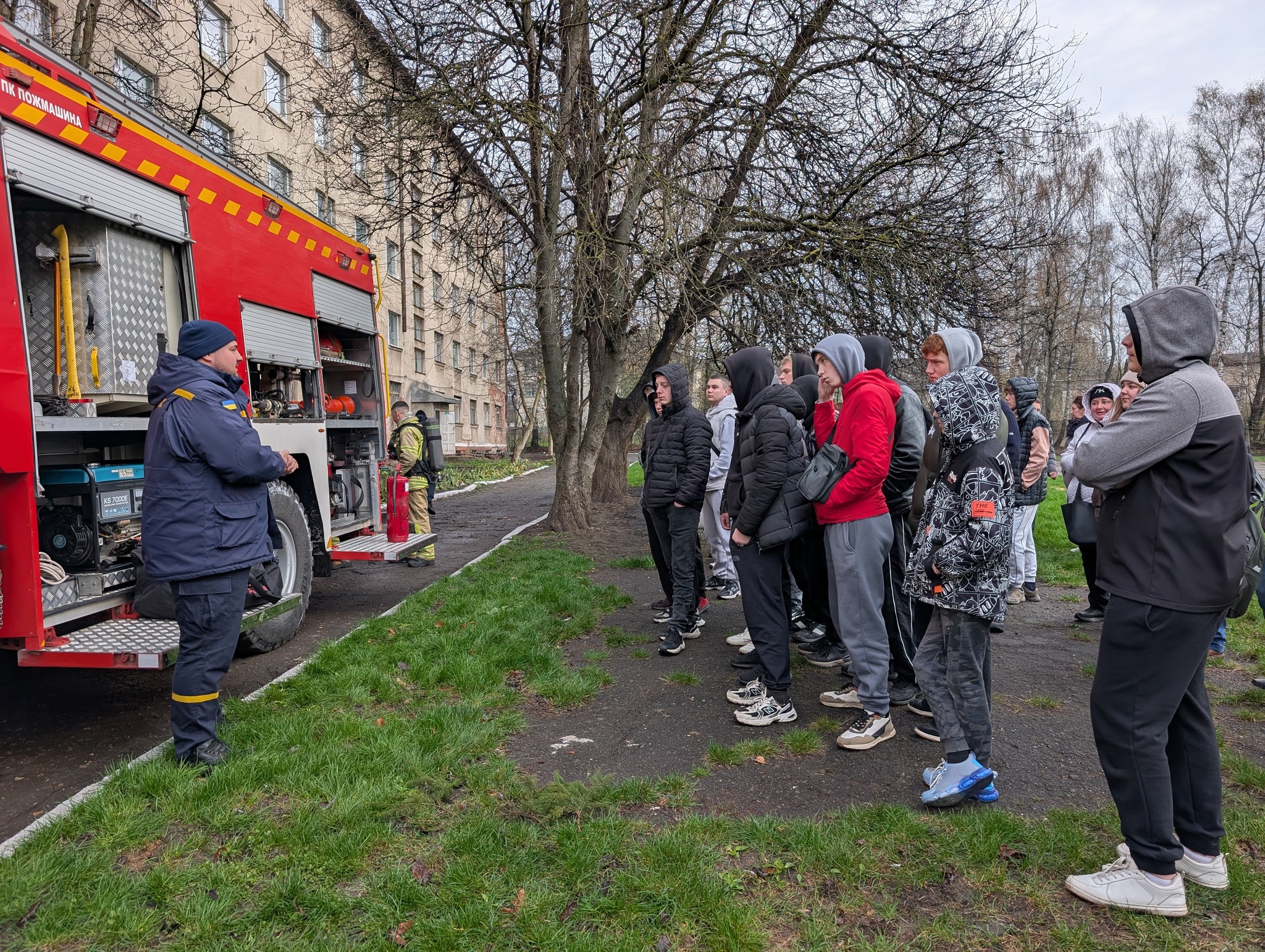 Захід відбувся у межах місячника з охорони праці та був максимально наближений до реальних умов. У гуртожитку училища організували тренувальну евакуацію під час умовної пожежі.