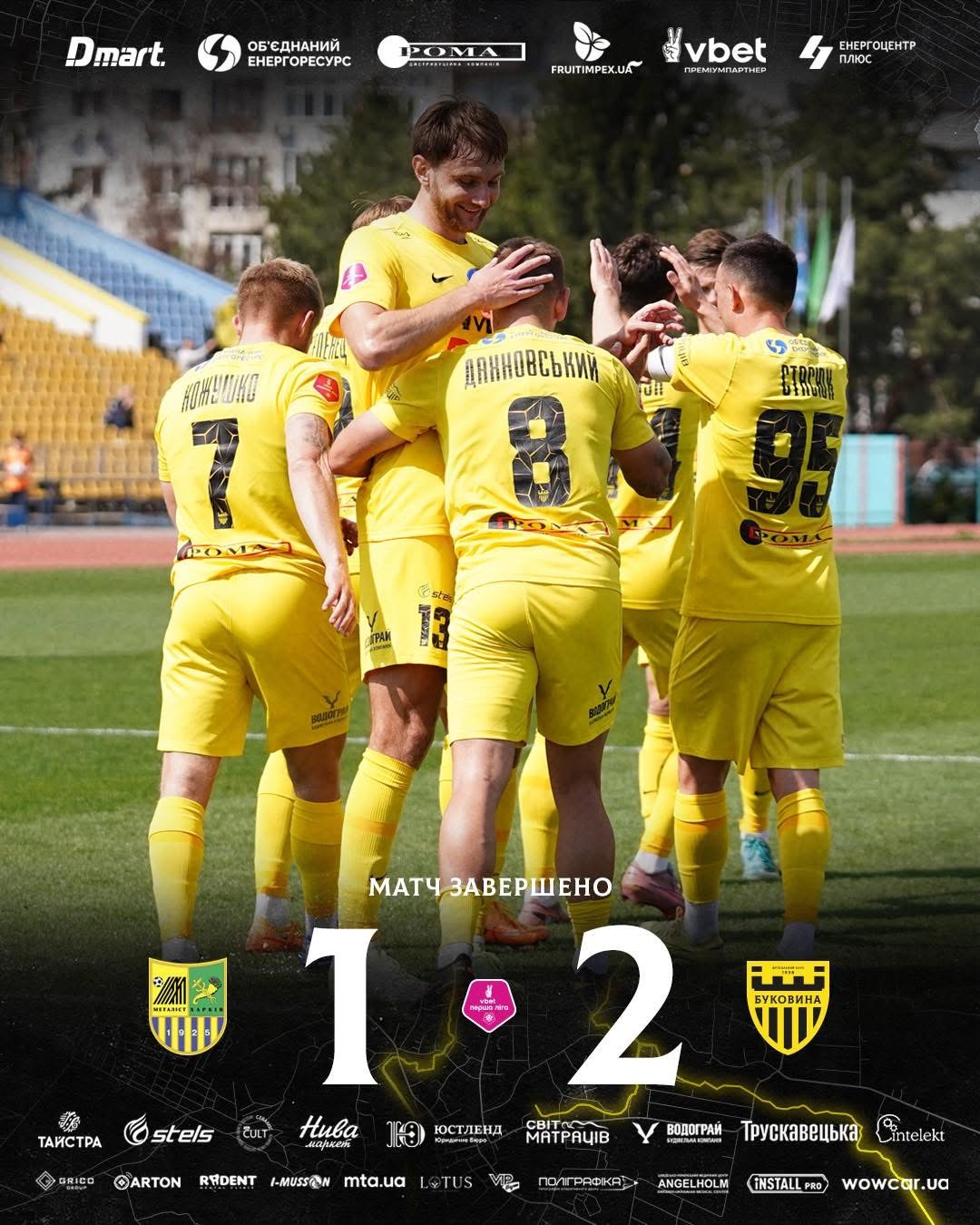 Фінальний свисток зафіксував перемогу «Буковини», яка дозволила команді й надалі впевнено очолювати турнірну таблицю Першої ліги. Наразі чернівчани мають 66 очок і залишаються єдиною командою сезону без поразок.