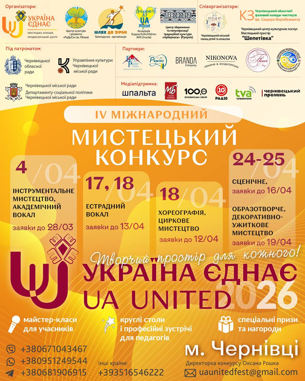 Подія об’єднає учасників з різних міст України у напрямах сценічного, образотворчого та декоративно-ужиткового мистецтва.