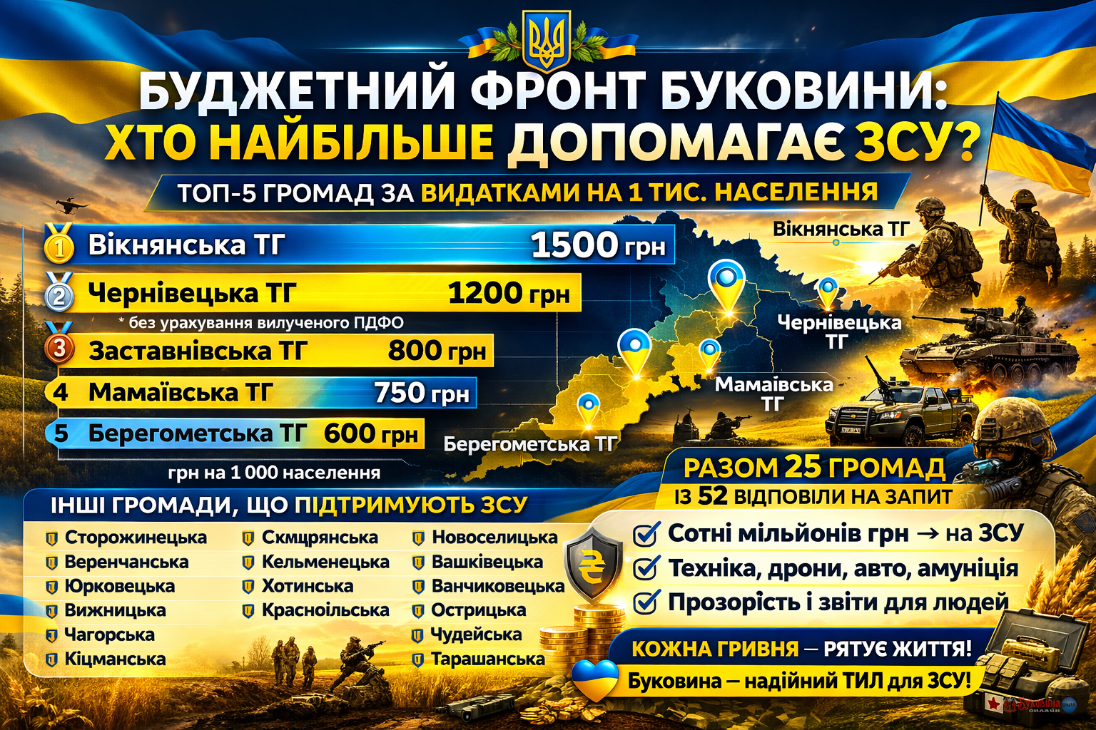 Хто з громад Буковини найбільше допомагає війську