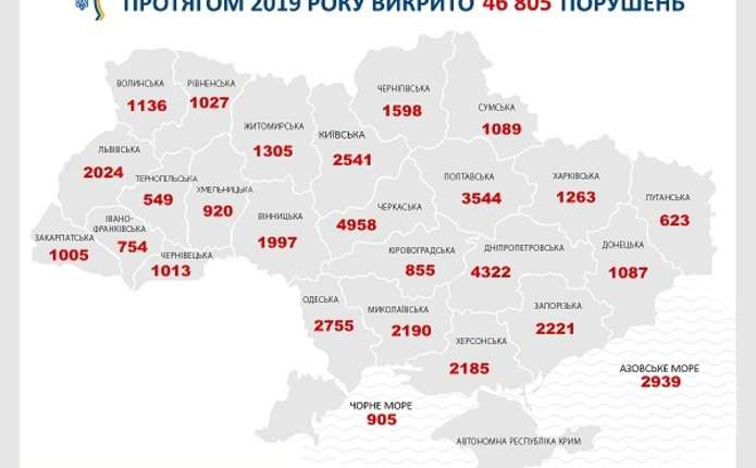 Найбільшу кількість порушень виявлено Черкаським, Дніпропетровським, Полтавським, Одеським, Київським рибпатрулями, а також Азовським басейновим управлінням.