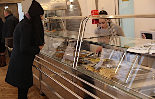 Їдальня знаходиться на вул. Грушевського (на другому поверсі “Гірського Меду”.