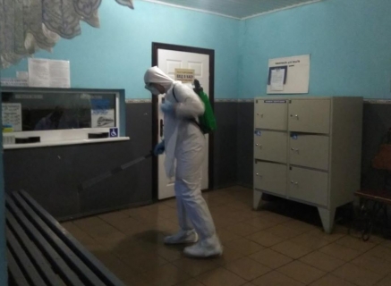 Відповідно до протокольного рішення обласної комісії з питань ТЕБ та НС з метою недопущення розповсюдження інфекційних захворювань, 7 березня рятувальники Управління ДСНС України у Чернівецькій області спільно з працівниками Головного управління Держпродспоживслужби області, провели дезінфекційні заходи щодо обробки дезінфікуючим засобом «Санітаб» автовокзалів та автостанцій по всій території Чернівецької області, зокрема Сторожинецької автостанції також.