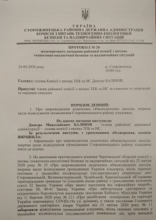 Сьогодні, 24 квітня 2020 року, відбулося позачергове засідання районної комісії з питань ТЕБ та НС, на якому було зобов’язано Сторожинецьку, Великокучурівську, Чудейську, Красноїльську громади та сільські ради району заборонити відвідування кладовищ у післяпасхальні (післявеликодні) поминальні дні, крім випадків здійснення поховання померлого.