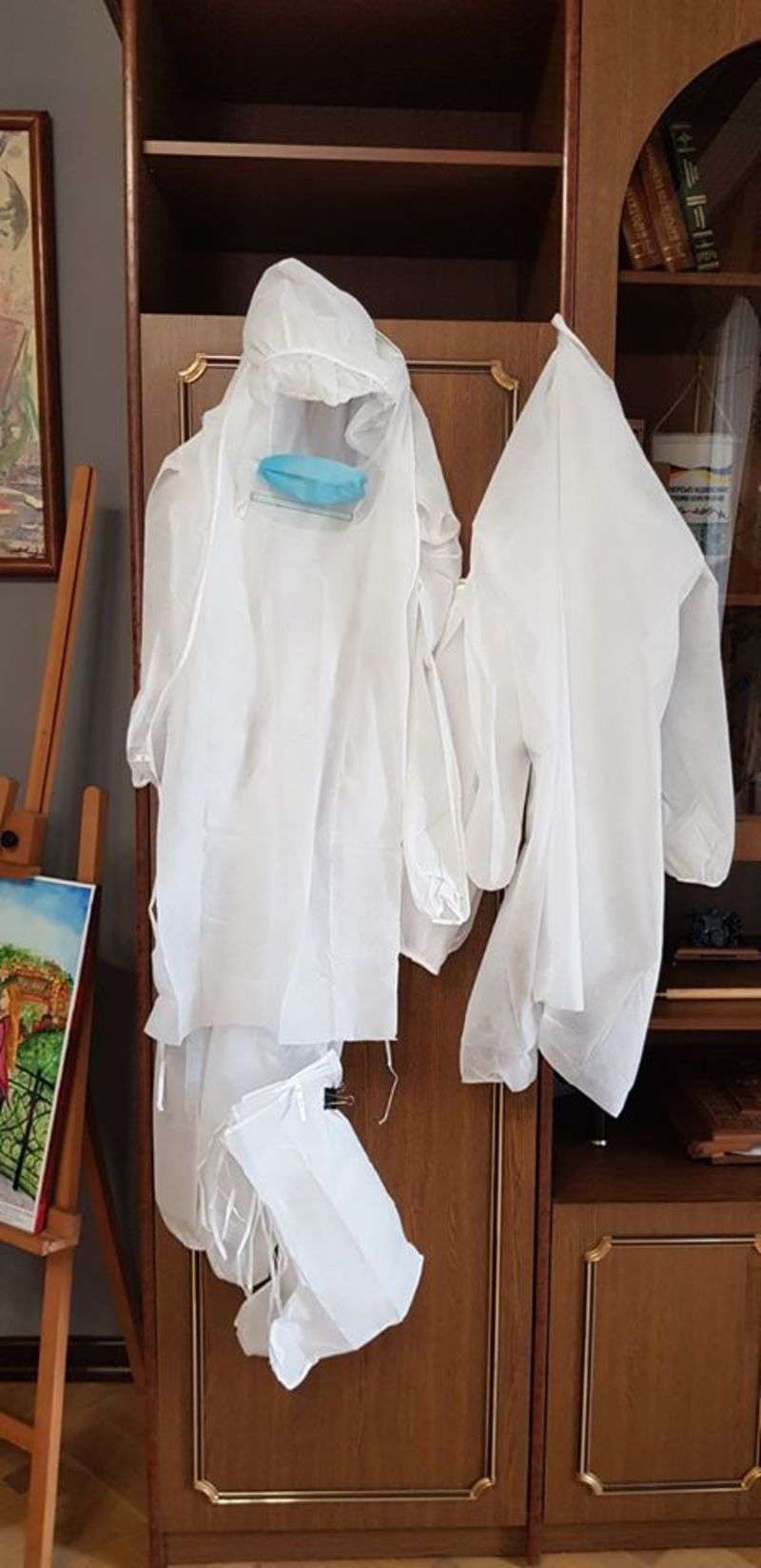 Комбінезон, халат, фартух, високі бахіли, шапочка, нарукавники, маска від Балакком та захисний щиток для обличчя від Сергія Герасимова та ТОВ Супутник”, – про це повідомив на своїй сторінці у Facebook міський голова Чернівців Олексій Каспрук.