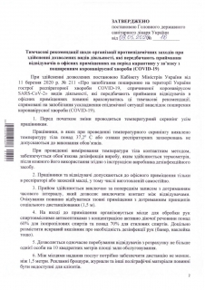 Щодо організації протиепідемічних заходів при прийманні відвідувачів у офісних приміщеннях