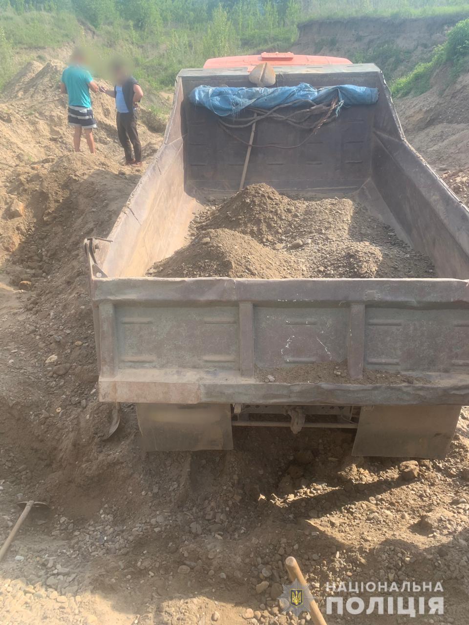 Спілкуючись з поліцейськими чоловіки не надали будь-яких документів на право здійснення надровидобувних робіт.