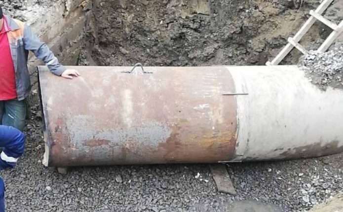 Нагадаємо, в суботу та неділю проводились підготовчі роботи на базі КП «Чернівціводоканал» – вирізали необхідні сегменти, підганяли їх до необхідного розміру. Через те, що прорив стався у дуже складному для доступу місці, було прийняте рішення замінити 5,5 метрів труби. Традиційно такі великі сегменти труби замовляють на підприємствах, які їх виробляють, але ця процедура може розтягнутись на кілька місяців. Щоб не залишати мешканців без води, вирішили зварити потрібну частину своїми силами, на підприємстві. Поворотний елемент зробили з кількох сегментів та привезли на проспект Незалежності для встановлення.