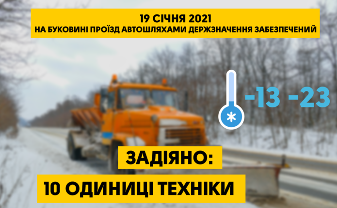 Температура повітря цієї ночі в Чернівецькій області коливалася від 13 до 23 градусів морозу. Щоб забезпечити безпечний проїзд автошляхами держзначення Буковини працювало 10 одиниць техніки та 26 робітників.