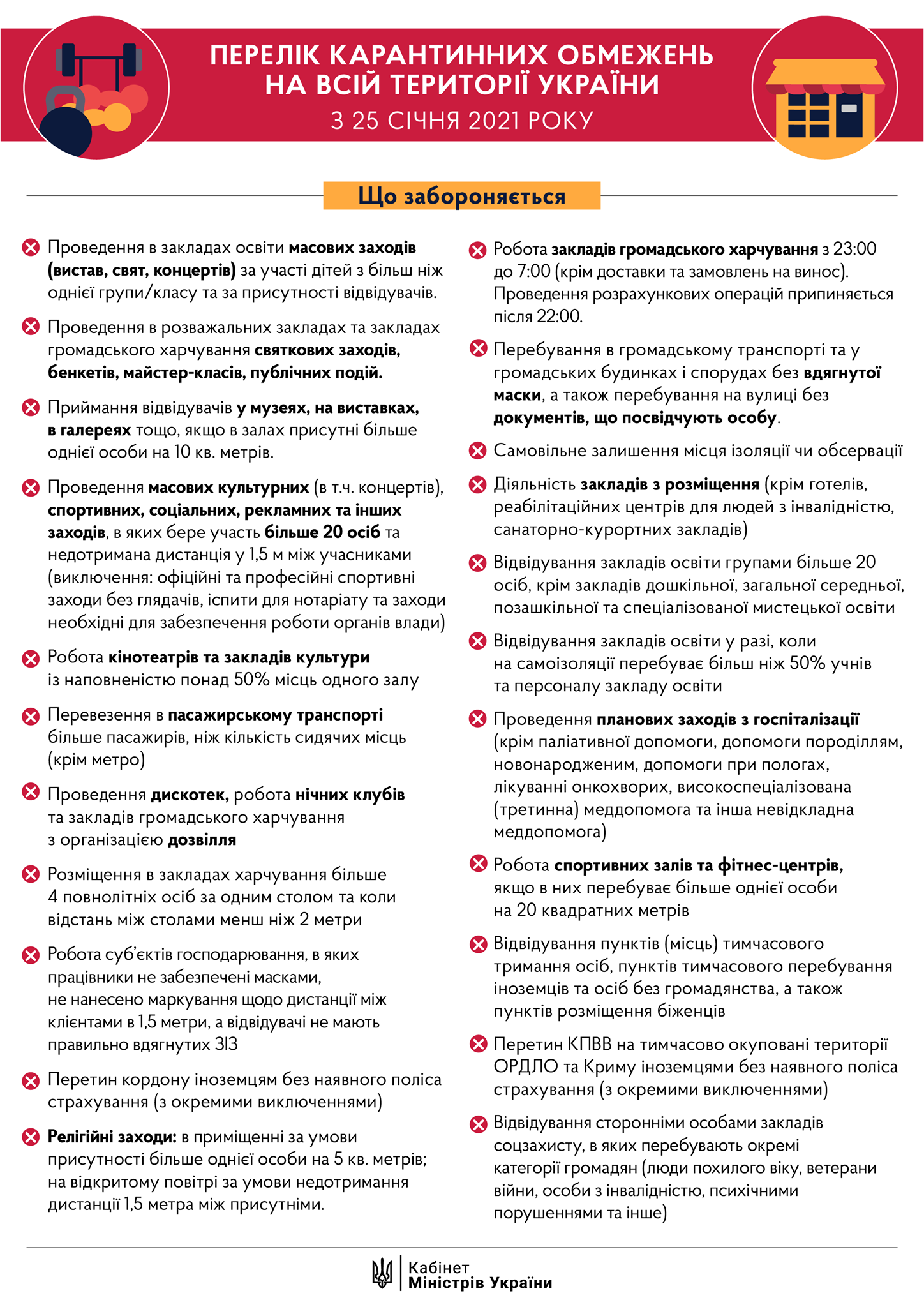 Адаптивний карантин буде діяти до 28 лютого, однак уряд планує продовжити його термін до 31 березня 2021.