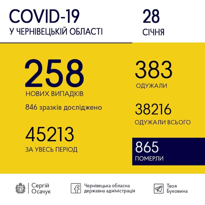 28 січня на Буковині виявили 258 нових випадків коронавірусу.