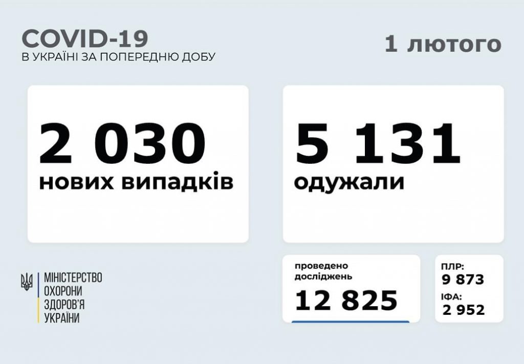 В Україні за минулу добу коронавірусну хворобу виявили у 2 030 людей. Відомо також, що 5 131 пацієнт одужав, а 61 помер. Понад 1100 людей потрапили до лікарень.