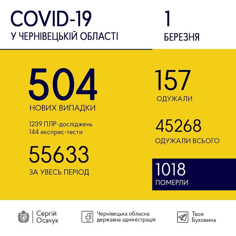 1 березня на Буковині виявили 504 нових випадки коронавірусу.