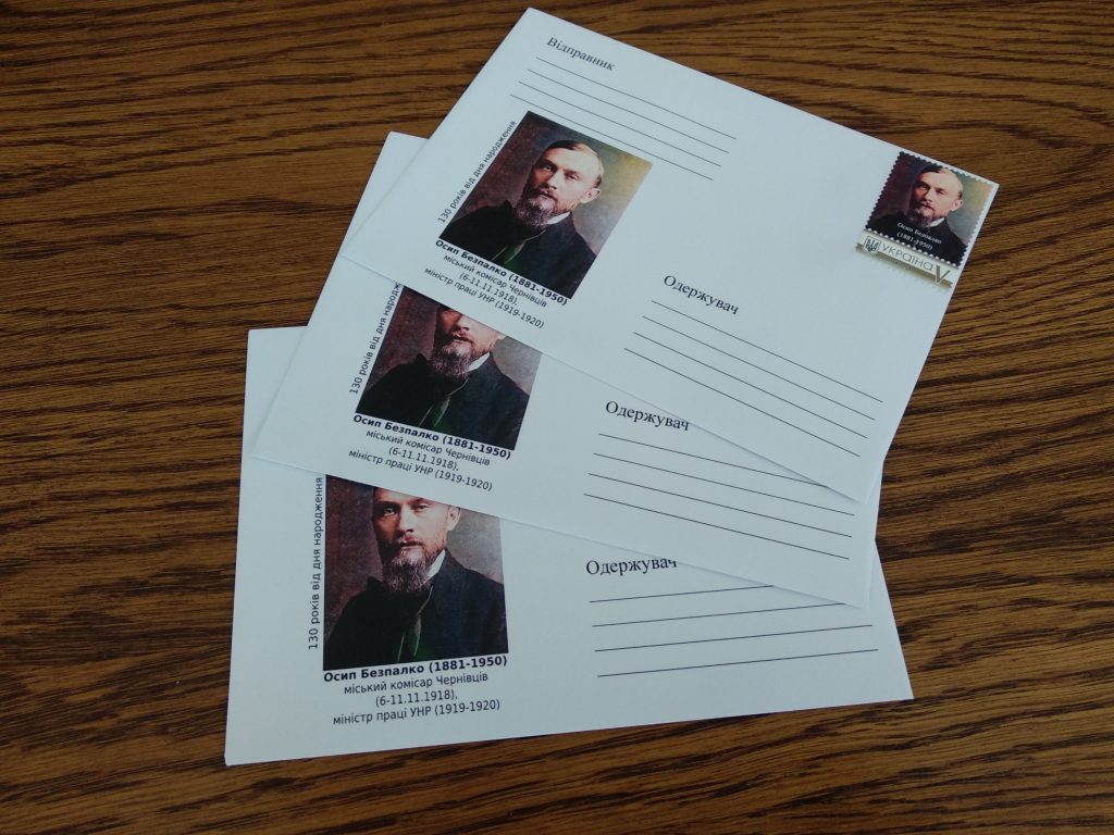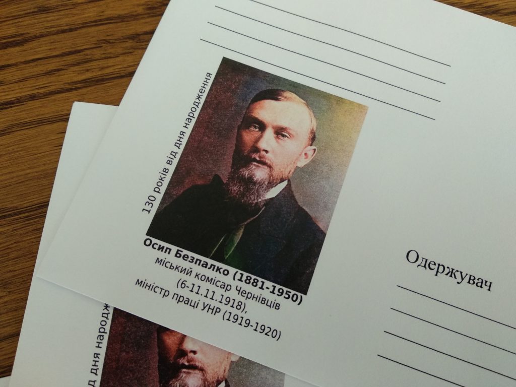 У Чернівцях створили поштову марку та конверт до 130-річчя від дня народження відомого українського політичного громадського діяча та комісара Чернівців Осипа Безпалка.