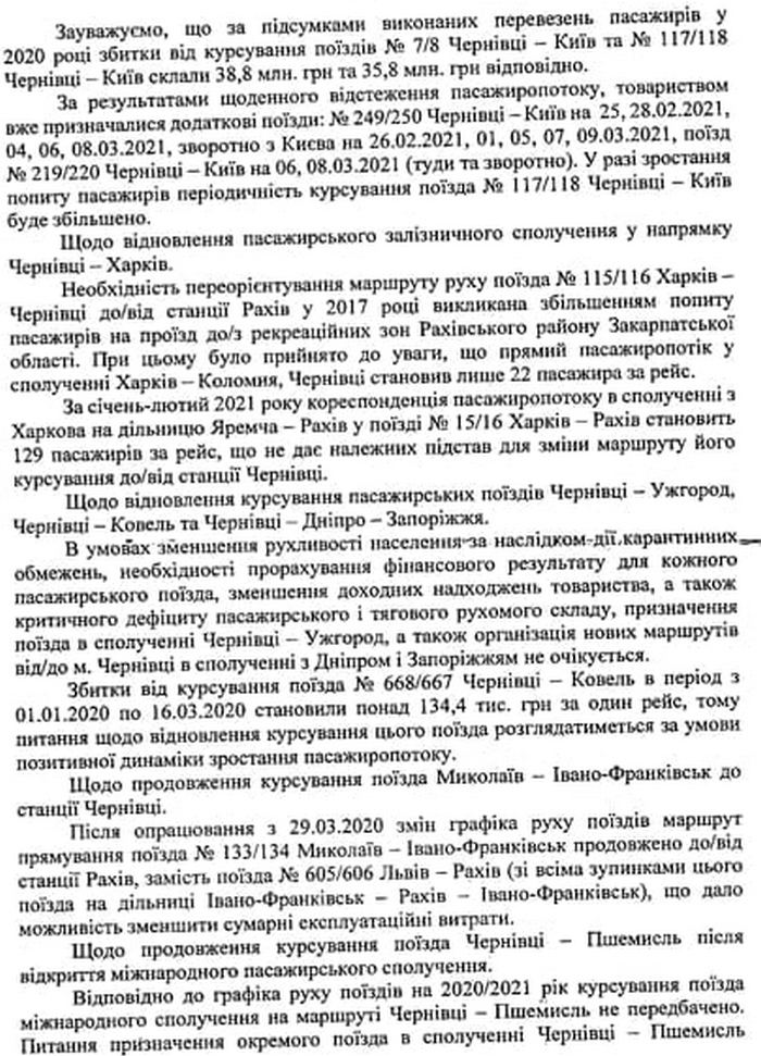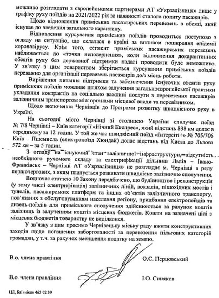 «Укрзалізниця» відмовила у призначенні усіх потягів, які просили у листі, а також зазначили, що швидкісного сполучення з Києвом не буде