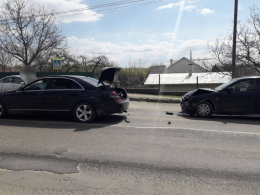 Дорогий Mercedes майже не постраждав, а от “Мазді” добряче примнуло капот.