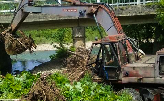 Русло річки під мостом у Розтоках Вижницького району, розчищають дорожники. Як повідомляє служба автомобільних доріг у Чернівецькій області, роботи тривають на шляху дороги Р-62 «Криворівня – Усть-Путила – Старі Кути – Вижниця – Сторожинець – Чернівці».