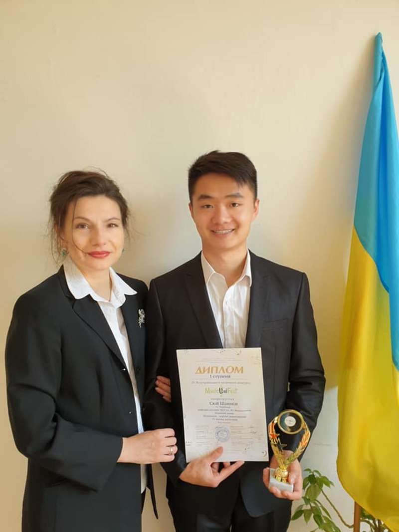 Так, студент кафедри музики з Китайської Народної Республіки здобув перемогу та отримав звання Лауреата І ступеня у номінації «Хорове диригування» (IV вікова категорія).