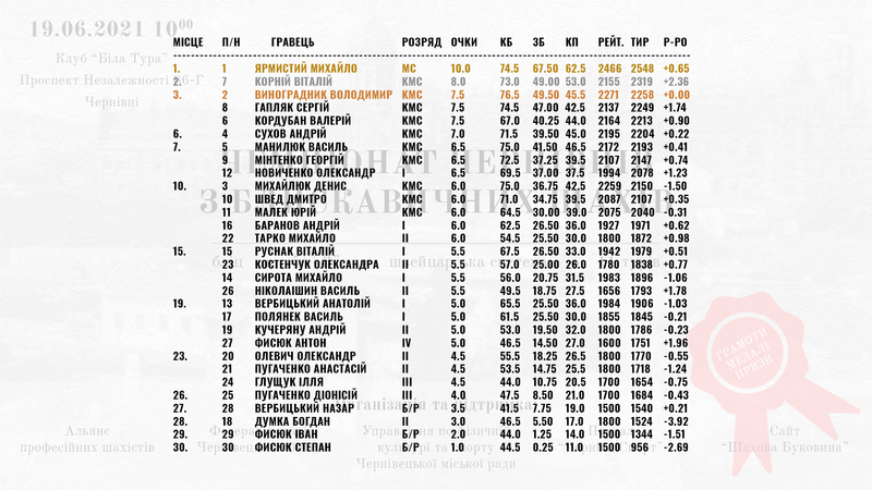 Кращим серед ветеранів став Георгій Мінтенко (6,5), а серед юнаків – Дмитро Швед (6).