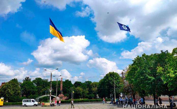 До свого професійного свята правоохоронці підготували два стяги, розміри яких наразі є найбільшими в Україні. Двісті квадратних метрів синьо-жовтого полотна державного прапора та 100 метрів прапора НПУ поліцейські підняли над Чернівцями за допомогою дронів. Головне управління Національної поліції в Чернівецькій області звернулося до представників Книги рекордів України для офіційної фіксації національного рекорду. Про це повідомляє відділ комунікації поліції у Чернівецькій області.