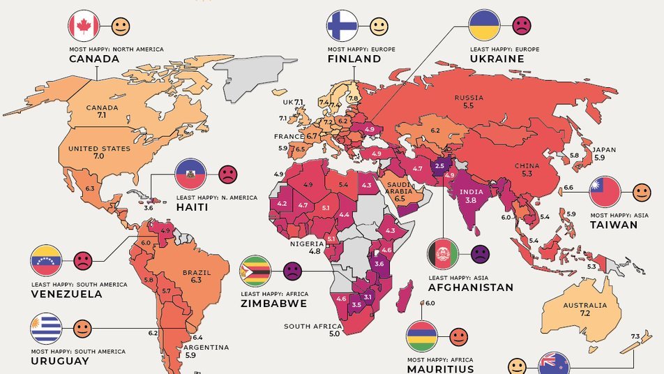 Фінляндія залишається на вершині таблиці лідерів як найщасливіша країна у світі. На рейтинг цьогоріч також вплинув високий рівень довіри до способів боротьби з пандемією COVID-19. Найрозвиненішою країною в Азії є Саудівська Аравія, а у Східній. Азії та Океанії — Нова Зеландія. Найнещаснішою у регіоні залишається Індія. Найщасливішою у Східній Африці став Маврікій.