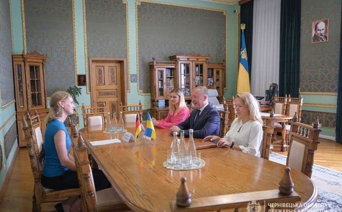 Навчальні обміни у сфері соціального захисту та можливість запровадження пілотного проєкту за участю молоді обговорили під час протокольної зустрічі голова Чернівецької ОДА Сергій Осачук із координаторкою партнерства Швабія-Буковина Європейського бюро Генеральної ради депутатів округу Швабія (ФРН) Катаріною Габеркорн.