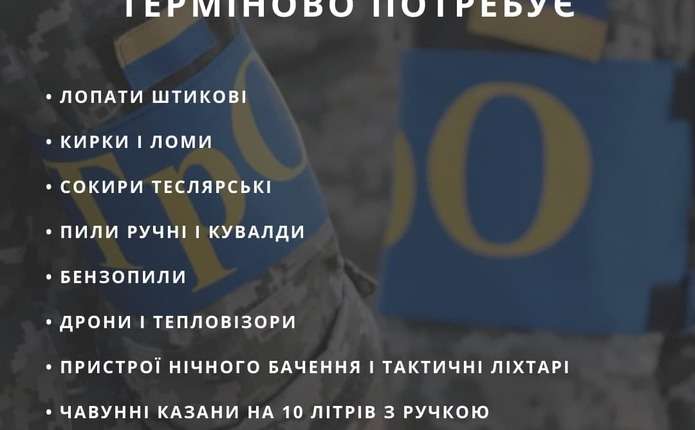 Територіальна оборона Буковини потребує гуманітарної допомоги. Про це повідомляє пресслужба Чернівецької обласної військової адміністрації.