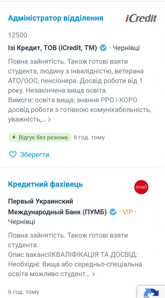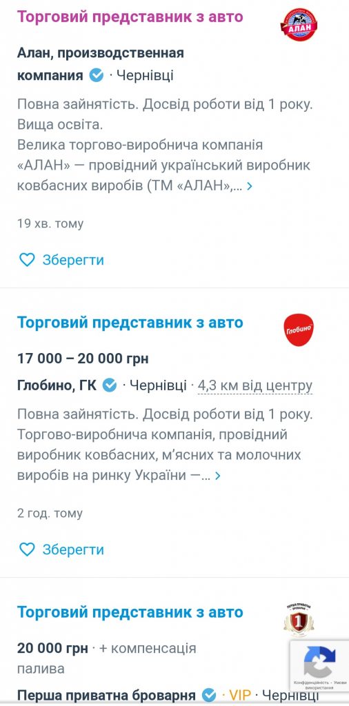 На сайті для пошуку роботи «Work.ua» у Чернівцях регулярно оновлюють вакансії. Візуально дуже змінився попит. Якщо не зникли, то принаймні не оновлюються вакансії у сферах продажів, краси та харчування. Натомість з’являються нові вакансії, актуальні нині.