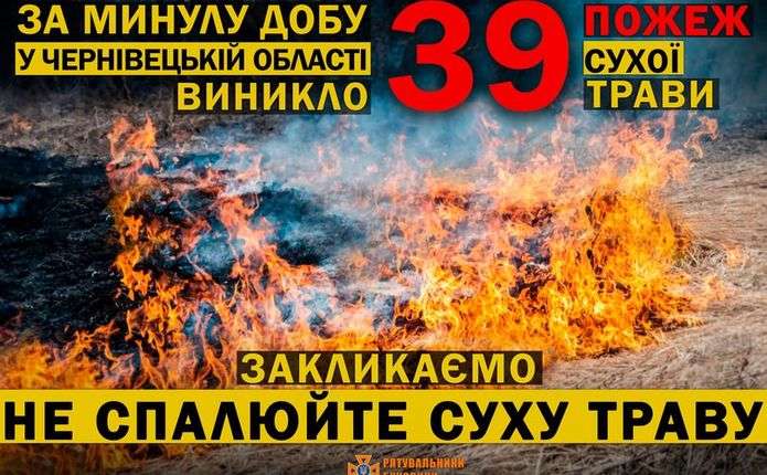 За минулу добу у Чернівецькій області виникли 39 пожеж сухої трави. Про це повідомляє пресслужба Управління ДСНС України у Чернівецькій області.