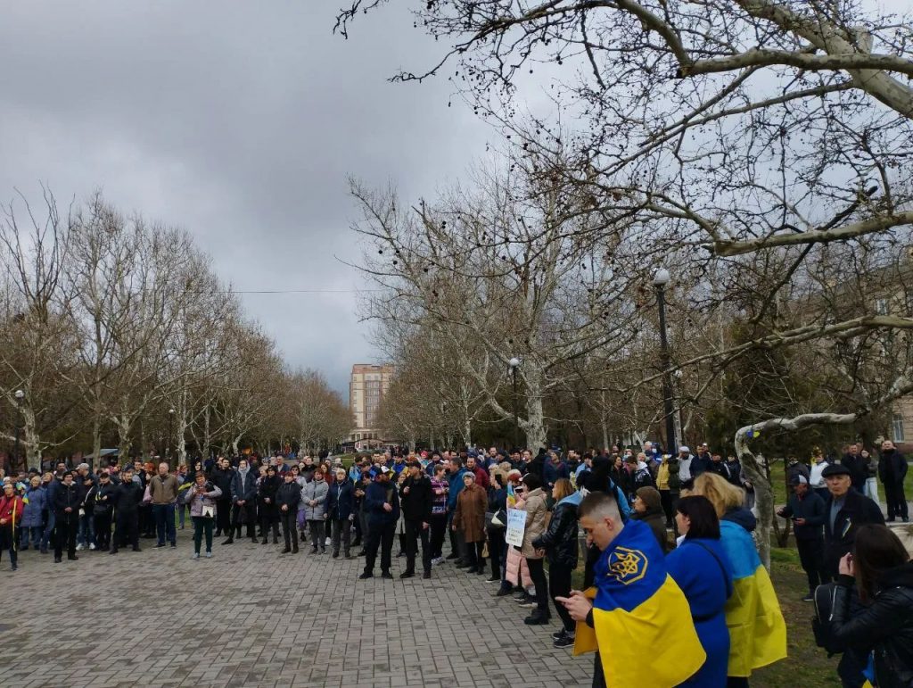 Раніше містяни традиційно збиралися на акції протесту на площі Свободи — біля будівлі ОДА та облради. Наразі їх контролюють озброєні російські війська. Вони використовують зброю проти учасників мітингів та викрадають людей.